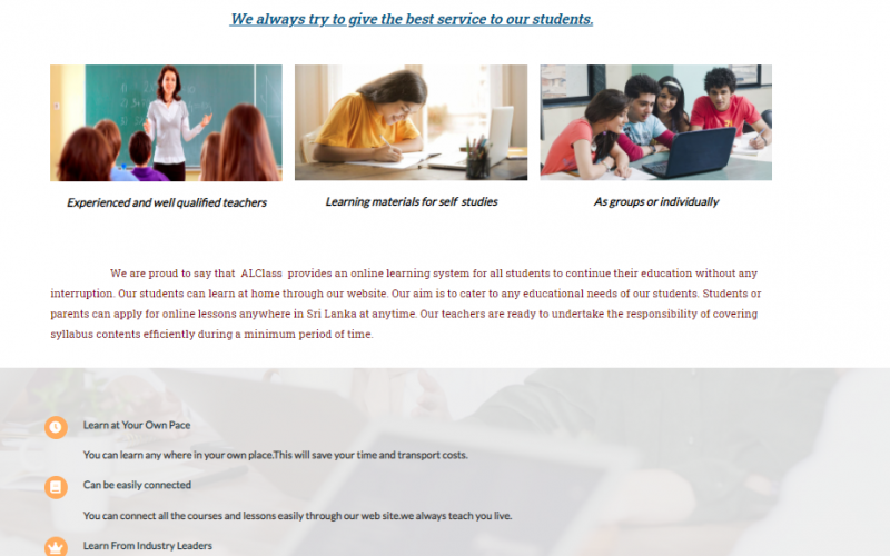 Our latest website is alclass.lk .It is an educational web site and already gaining popularity among students.We are happy to announce that it is already a very successful website.